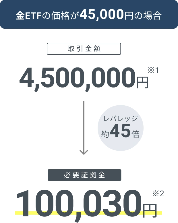- 日経225マイクロ価格×1取引単位(10円)、金ETF価格×1取引単位(100円)