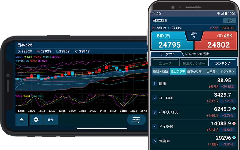 CFD取引は、デリバティブの対象となる株式、株価指数、その他指数、金利、為替、商品現物、商品先物、上場投資信託の価格の変動によりCFD取引価格が変動しますので、お客様の予想と反対方向に変動することにより、損失が生じるリスクがあり、投資元本は保証されません。また、損失の額が証拠金の額を上回る可能性があります。証券CFD取引に必要な証拠金の最低額は、株価指数CFDは各建玉の対価の額の10%、その他指数CFDは各建玉の対価の額の20%、商品CFDは5%、株式CFDは20%、上場投資信託を参照原資産とするCFDは株価指数に連動するものは10%、その他のものは20%に相当する円価格です。取引価格には、売値と買値に価格差(スプレッド)があります。スプレッドは相場急変時等に拡げる場合がございます。取引手数料は無料です。手数料以外に金利調整額、権利調整額、価格調整額が発生する場合があります。相場の変動により、ロスカットレートから乖離して約定する場合があり、その結果、損失額が証拠金の額を上回る可能性があります。