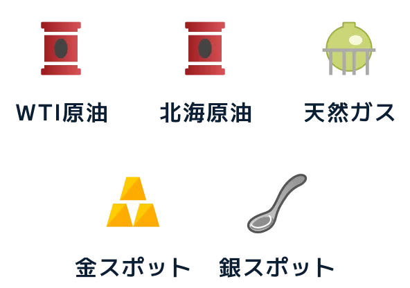 【対象銘柄2】人気銘柄WTI原油、北海原油、天然ガス、金スポット、銀スポット