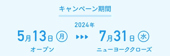 キャンペーン期間:5月13日(月)オープン〜7月31日(水)ニューヨーククローズ