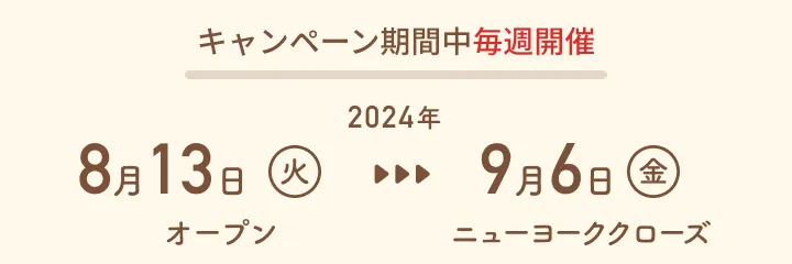 2024年8月13日(火)オープン~9月6日(金)ニューヨーククローズ