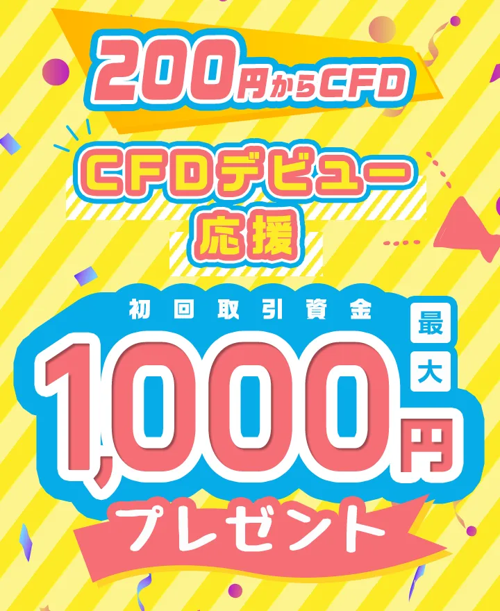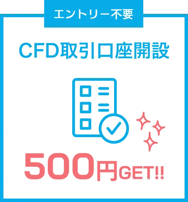 - キャンペーン期間外のCFD取引口座の開設は対象外です。(CFD取引口座開設の審査は最短2営業日かかりますのでご注意ください。)
