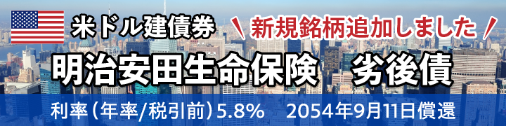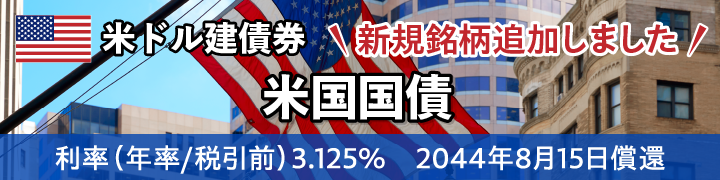 本債券は既発債となります。 米ドル(USD)の参考為替レートは、当社採用の最新のレートです。 参考利回りは2025/12/15時点となります。 現在の参考利回りはPC会員ページよりご確認ください。 ※最新の最低購入金額は、PC会員ページ【債券】-【トップページ】の各銘柄の情報一覧表にある[販売単位]項目よりご確認ください。 |