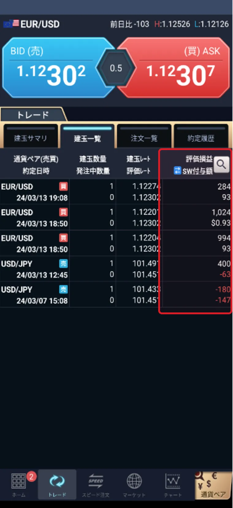 - 【FXネオ】-【トレード】-【建玉一覧】