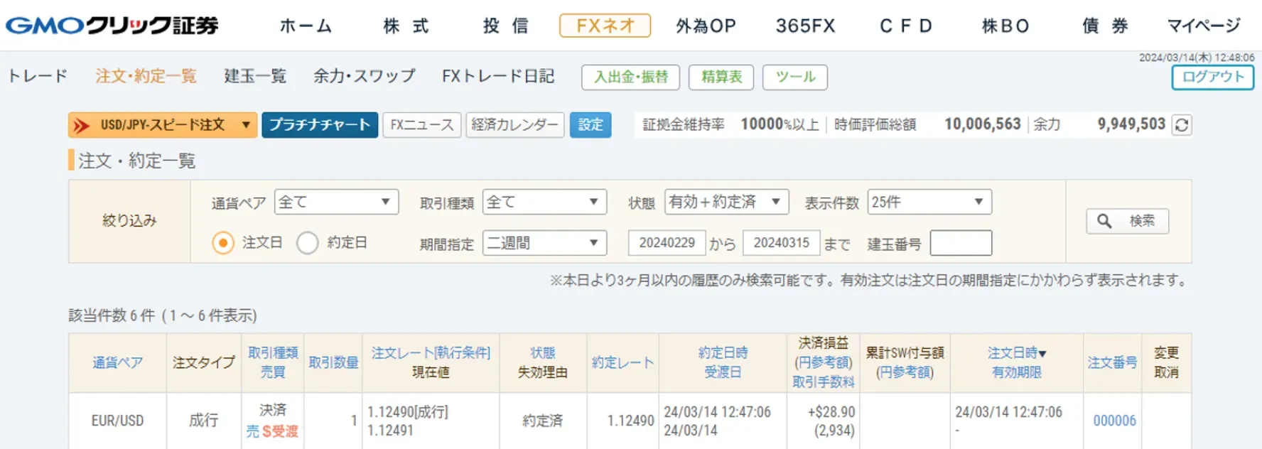 - ●【FXネオ】-【注文・約定一覧】を確認
