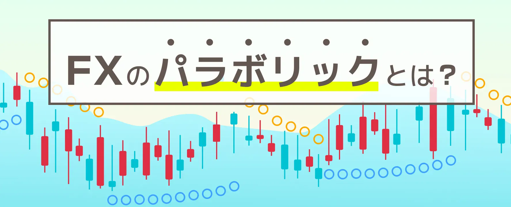 パラボリックとは、テクニカル分析の一つであるトレンドフォローですが、一般的にはあまり馴染みのないワードだと思います。パラボリックとは「放物線上の」という意味で、SAR(Stop And Reverse)と呼ばれる丸で囲まれたラインが、チャート上に放物線を描くように見えることから「パラボリック」と呼ばれるようになりました。