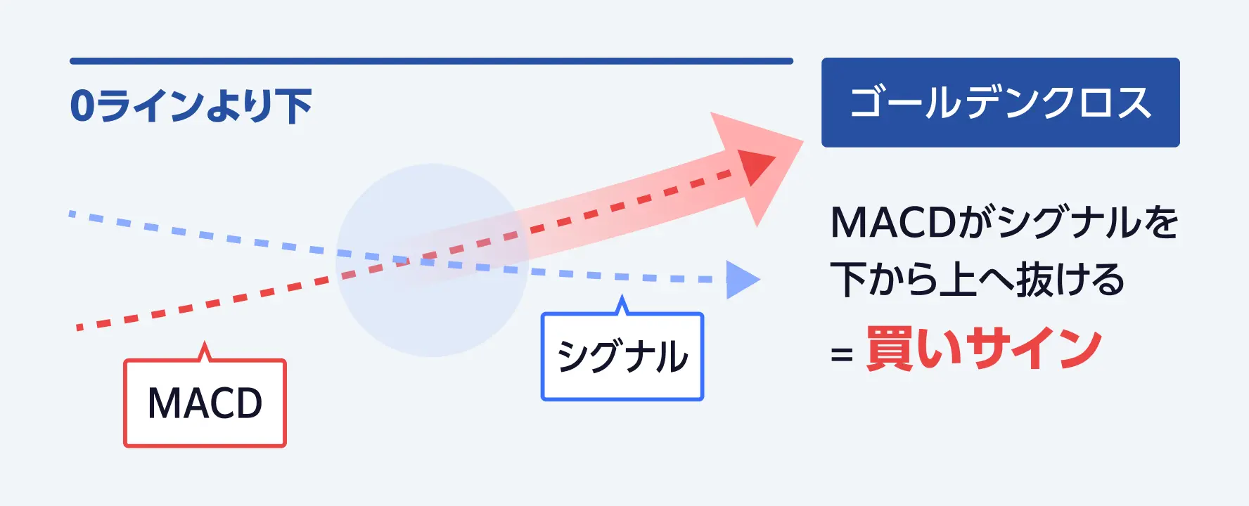 MACD線が0ラインより下でシグナル線を上抜けする