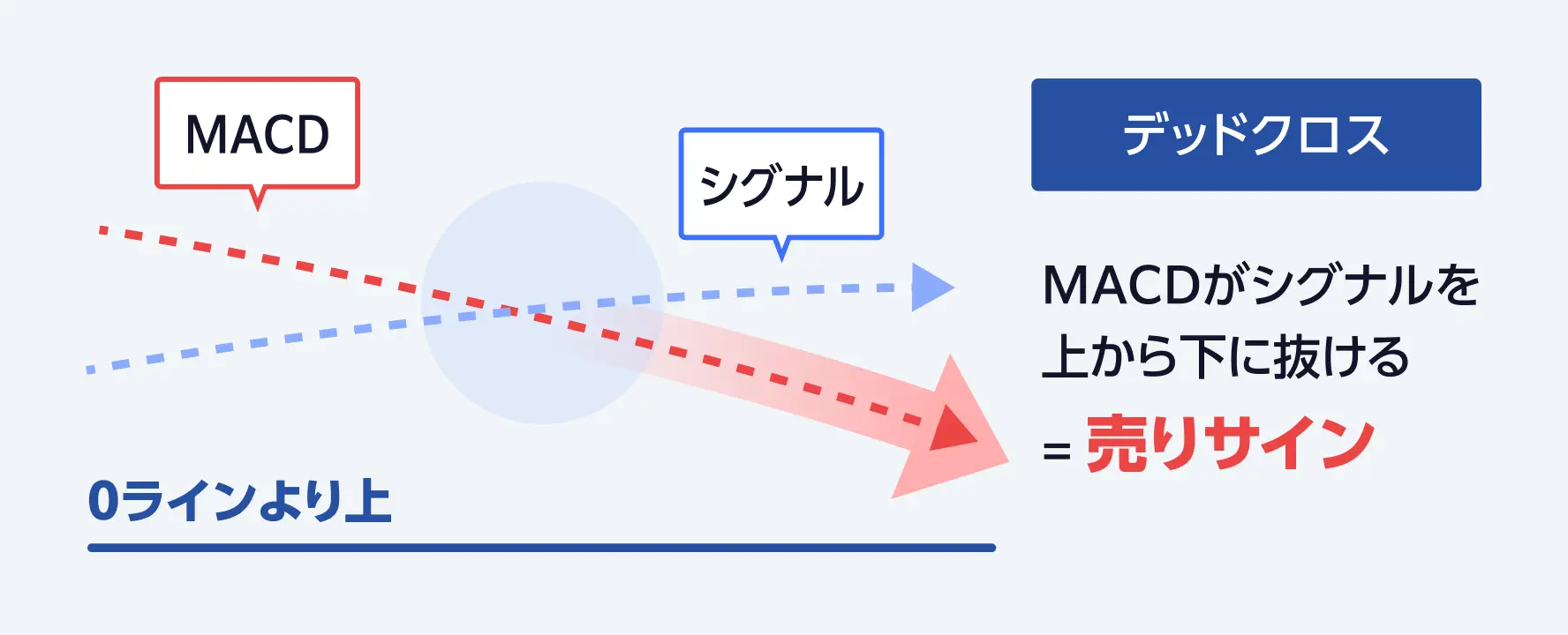 MACD線が0ラインより上でシグナル線を下抜けする