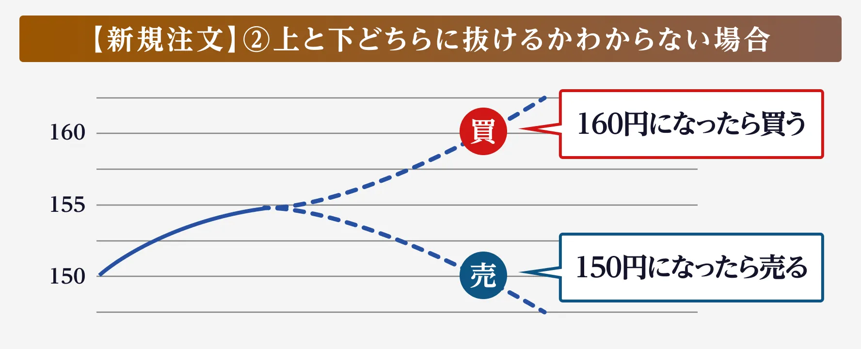 ・上値の160円に買いの逆指値注文、下値の150円に売りの逆指値注文をする