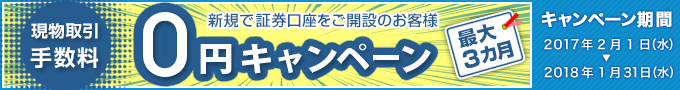 • コールセンター取引手数料、不足金および追加保証金期日超過による強制決済手数料、単元未満株の買取・売却手数料は無料とはなりません。