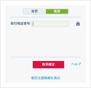 | 「変更」の場合は、注文内容を入力します。 「取消」の場合は、以下のような画面がでます。 |