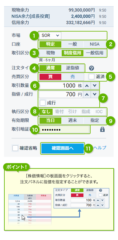 | 取引数量を入力します。 入力数量は売買単位でご入力ください。 |
