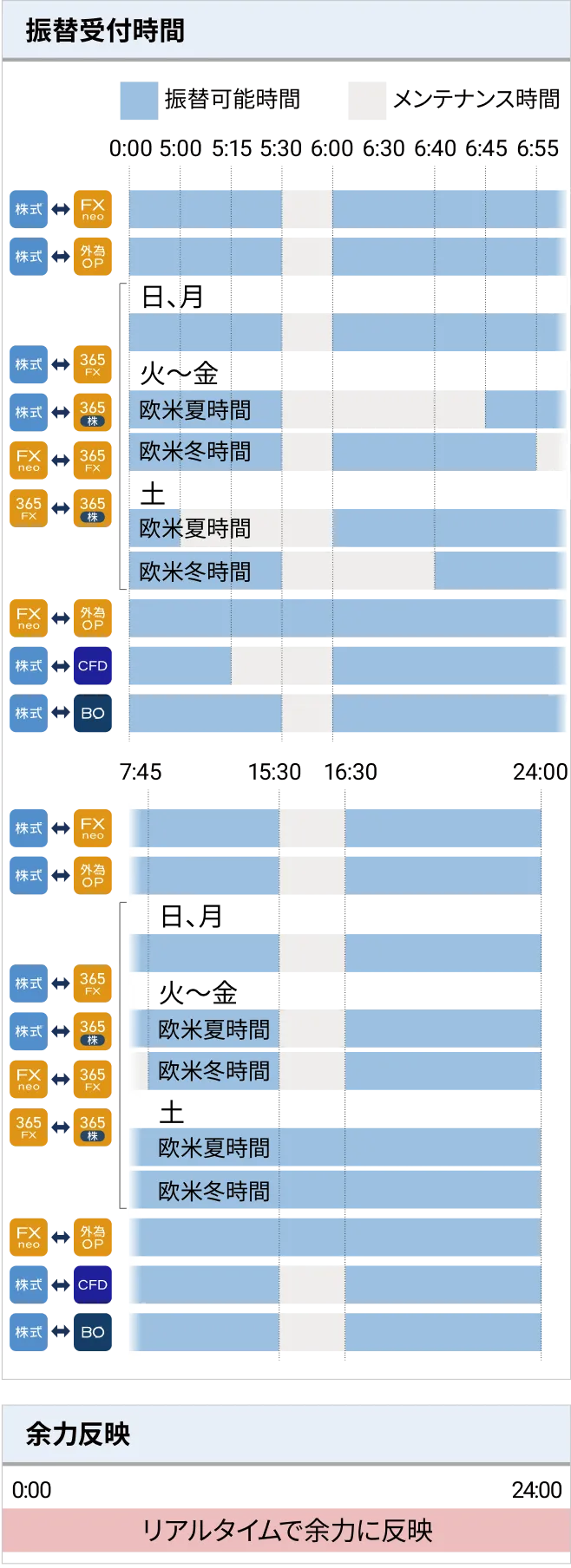 | 出金受付時間 | 以下の振替受付時間をご確認ください。 |