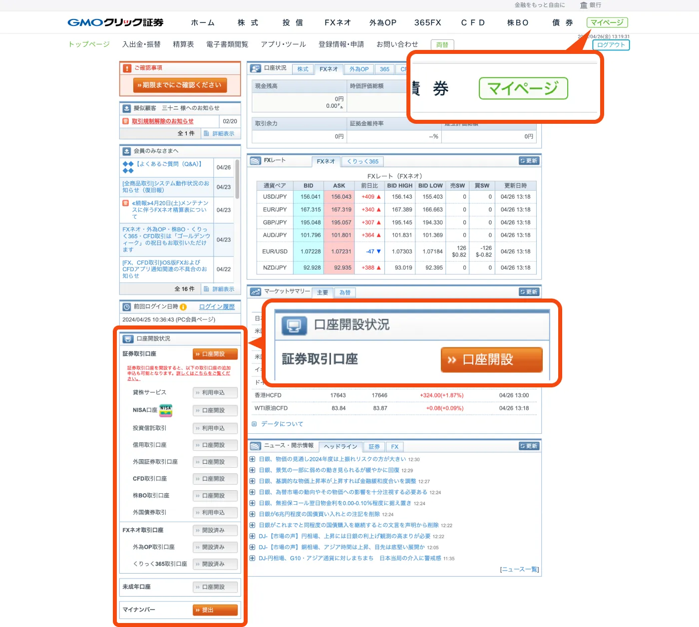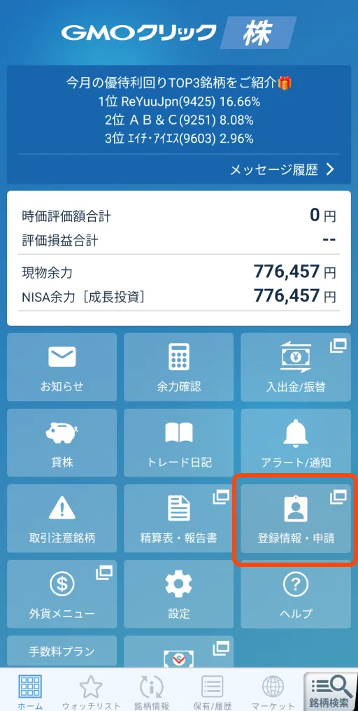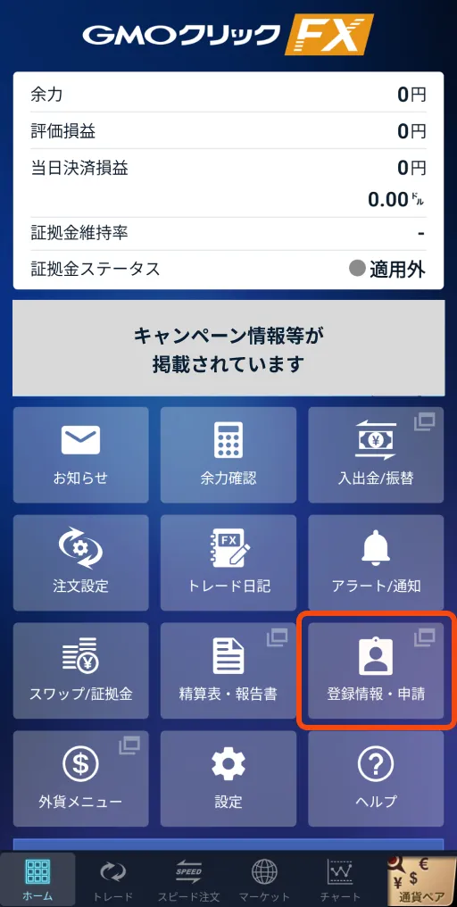 スマートフォンアプリ「GMOクリック株」を起動してログイン