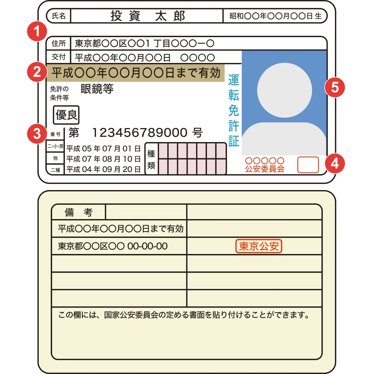 裏面に記載がある場合は、裏面の公安印もご確認ください。 - 5顔写真が鮮明に写っていることをご確認ください。