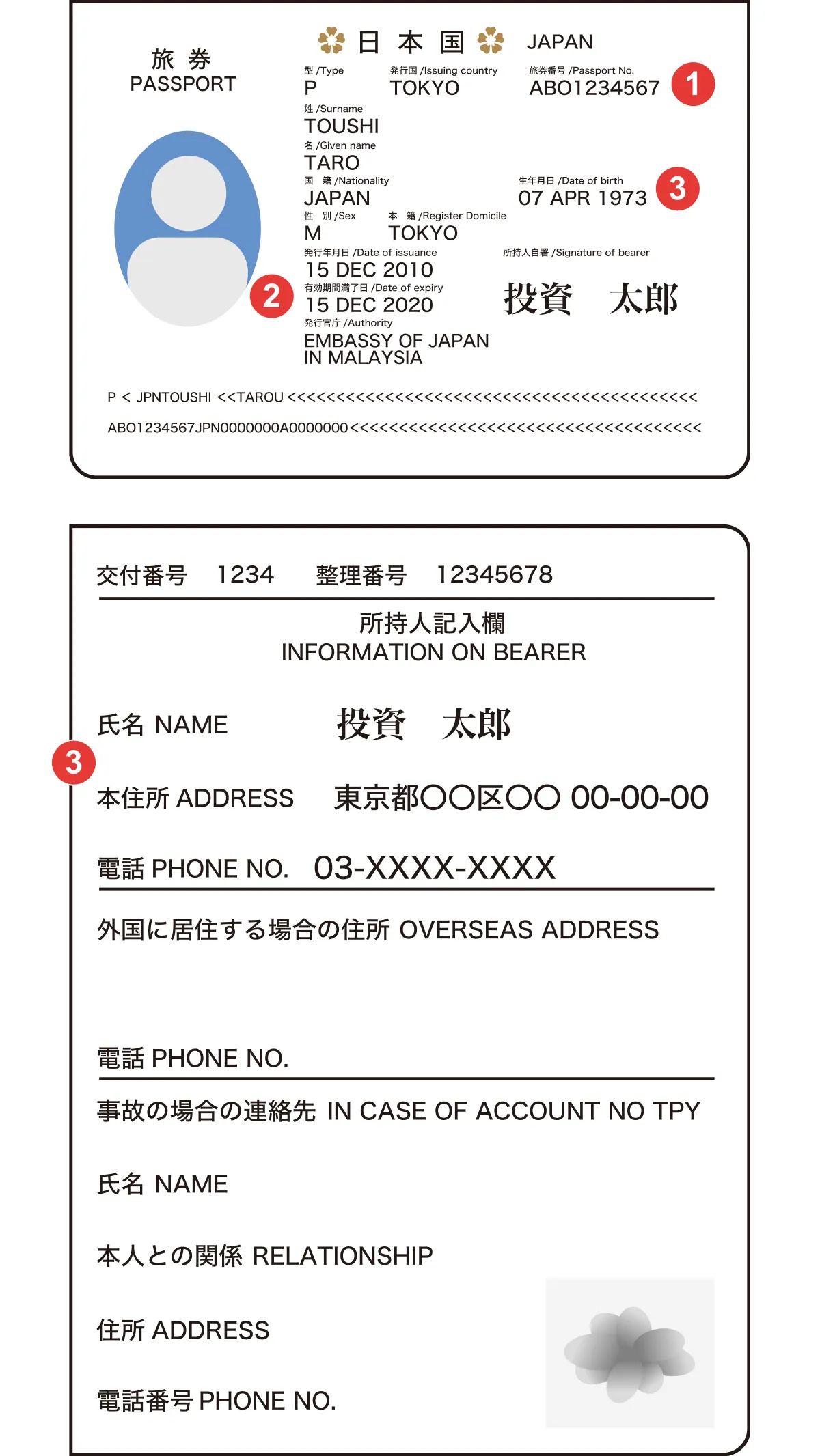 - 2020年2月4日以降に申請したパスポートは、「所持人記入欄」がないため受理できません。