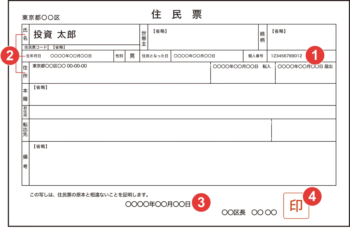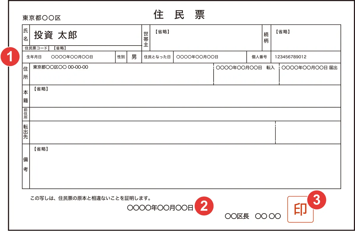 - 3印章が裏面または別紙にある住民票の場合、そのページも必要となります。