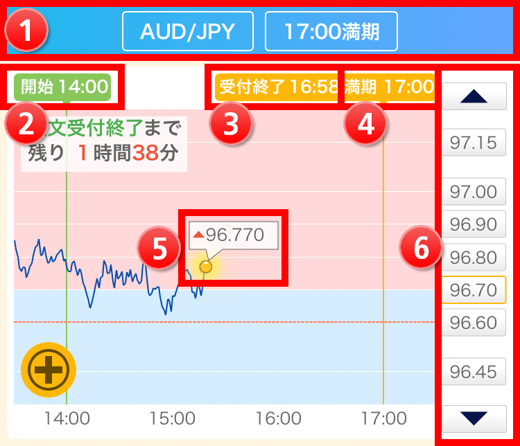 - 為替レートが、一定時間後に選択した権利行使価格を基準に上昇するか下落するかを予測します。