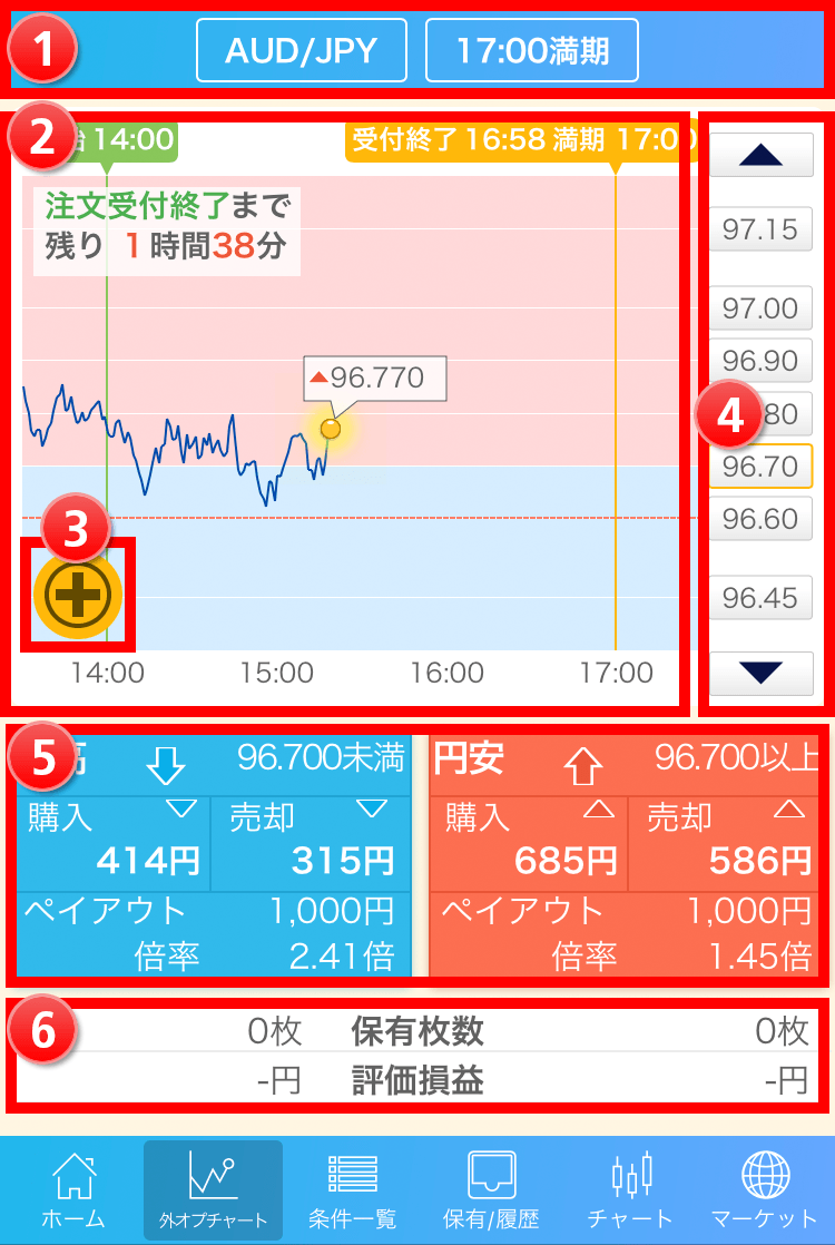 - 現在のお客様の「購入可能金額」「当日損益」「ヒット-アウト(回数)」を表示します。