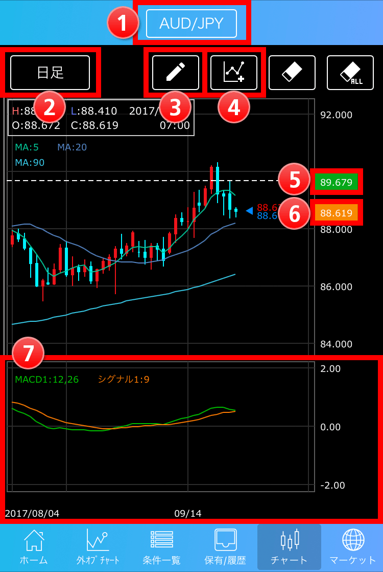 - 利用規約、GMOクリック証券ホームページなどのリンクボタンがご利用いただけます。こちらから、ご意見・ご要望のメールも受け付けております。
