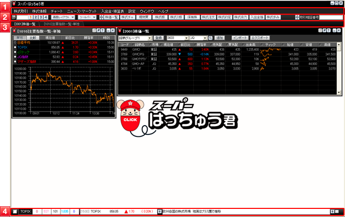 | 画面に表示されている株価などの情報が、リアルタイムで自動更新されます。 | |