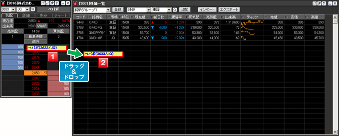 - 登録したい銘柄が表示されている他の画面上でドラッグします。