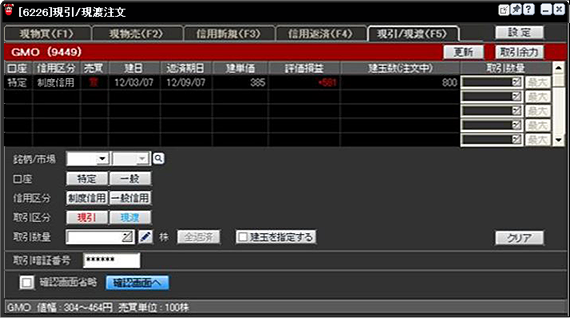 [6726] 信用建玉一覧など、他の画面からドラッグ&ドロップして銘柄を指定することも可能です。