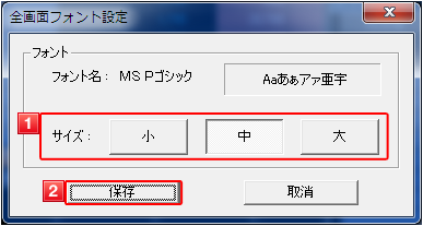 【設定】-【全画面フォント設定】を開き、「サイズ」から設定するフォントの大きさを選択します。